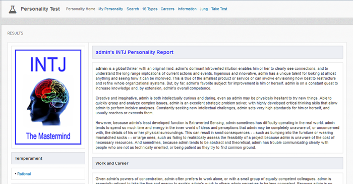 Personality Test homepage shows the extensive information about 'Personality Types'.